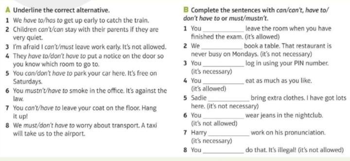 2. We don't have to book a table. That restaurant is never busy on Mondays (it's not necessary). Нам не нужно бронировать столик. Тот ресторан никогда не бывает заполнен по понедельникам (нет необходимости)