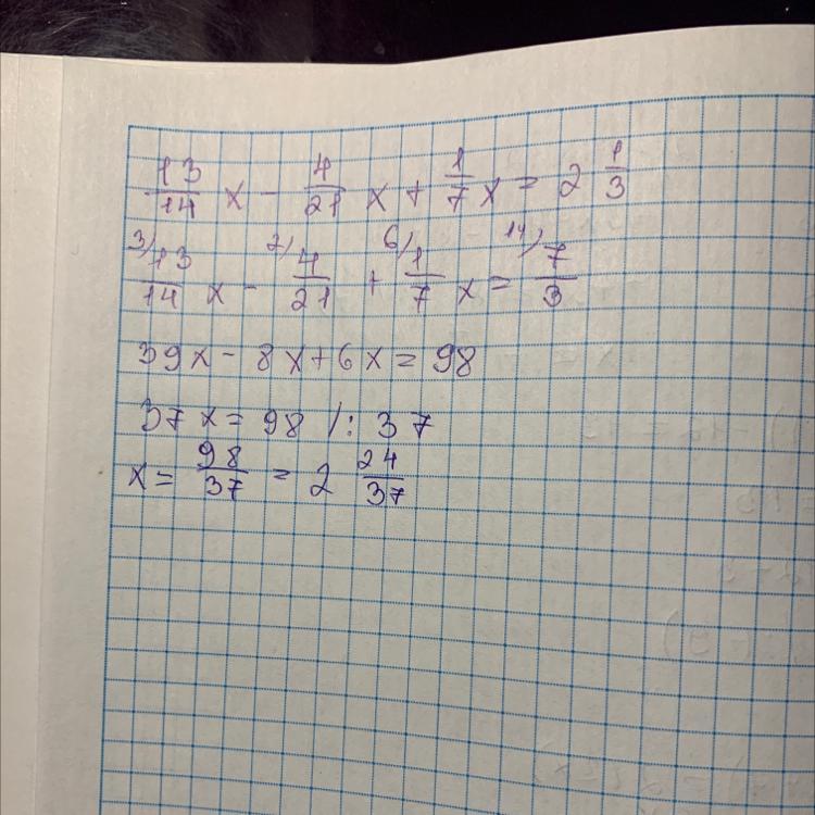 1) 39/42х - 8/42х + 6/42х = 2*14/42