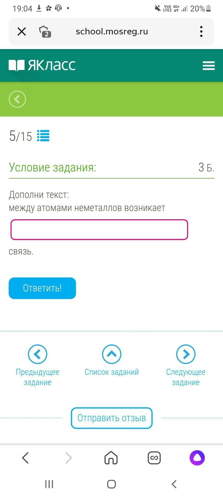 Между атомами неметаллов возникает КОВАЛЕНТНАЯ связь.