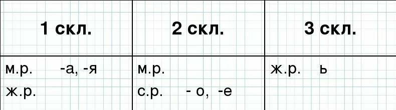 1е склонение - окончание "а" или "я" в мужском или женском роде
