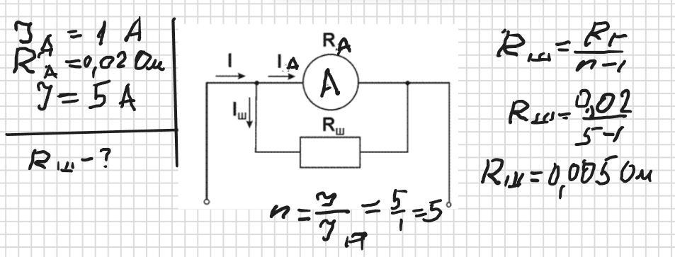 шунта, який треба з’єднати паралельно з амперметром, щоб можна було виміряти
