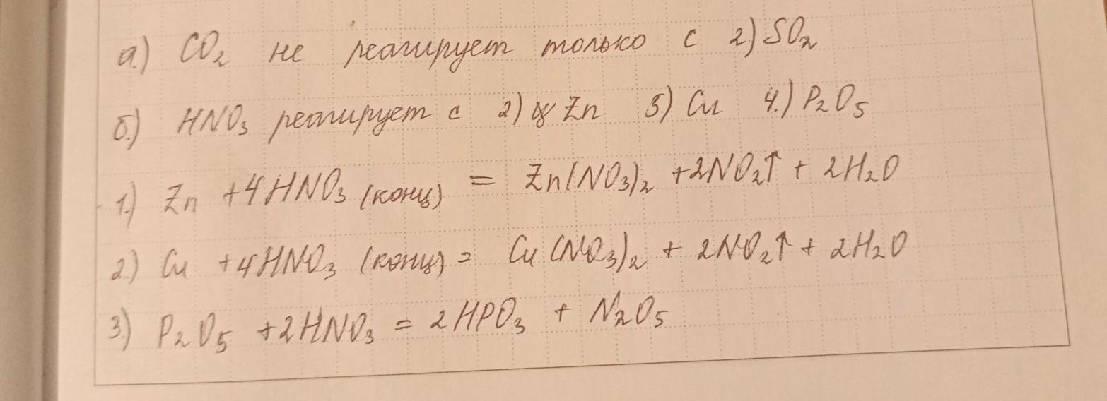 a)Оксид углерода(IV) не взаимодействует с каждым из веществ группы: