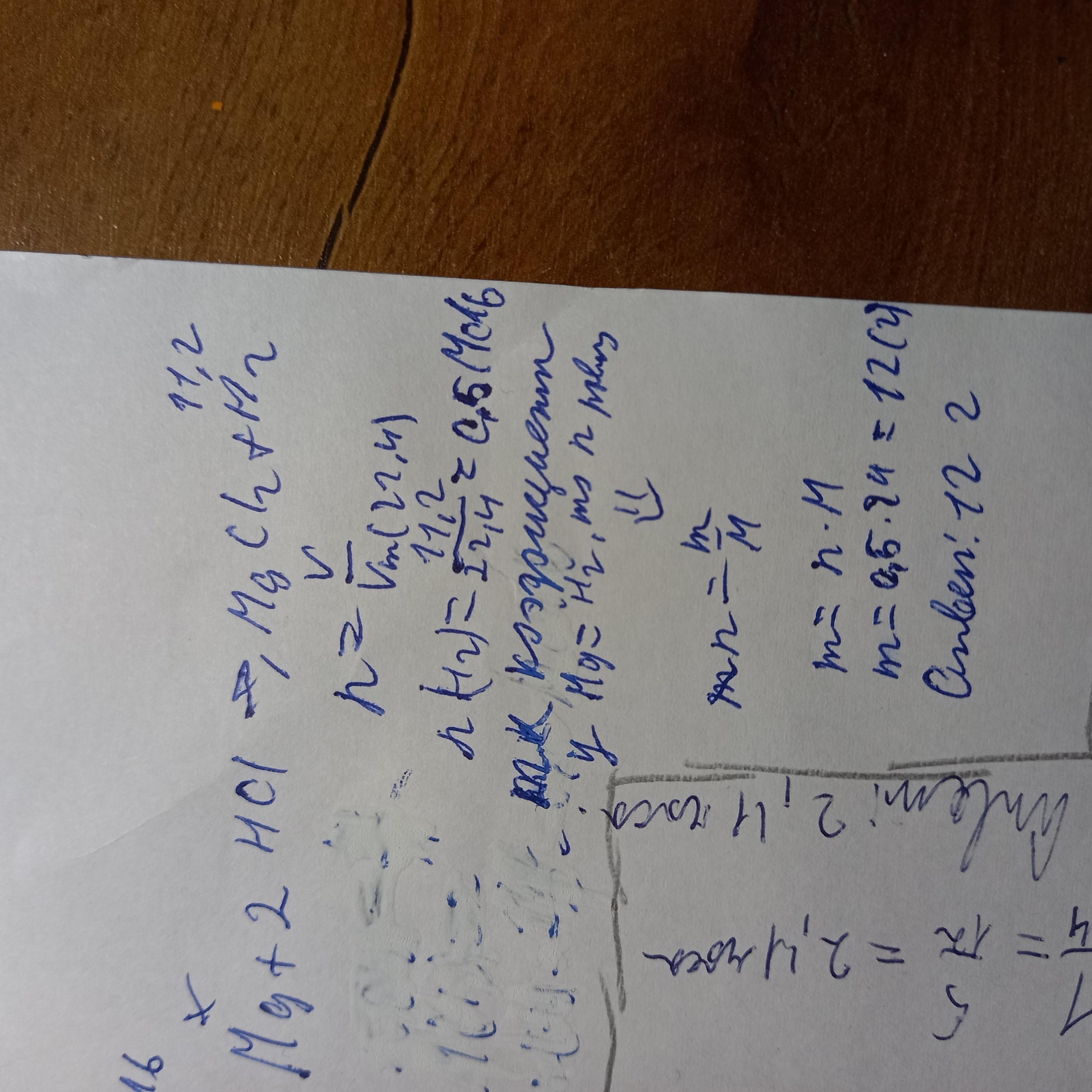 Яка масу магнію вступить в реакцію із хлоридною кислотою, якщо утворилося 11,2 л водню?
