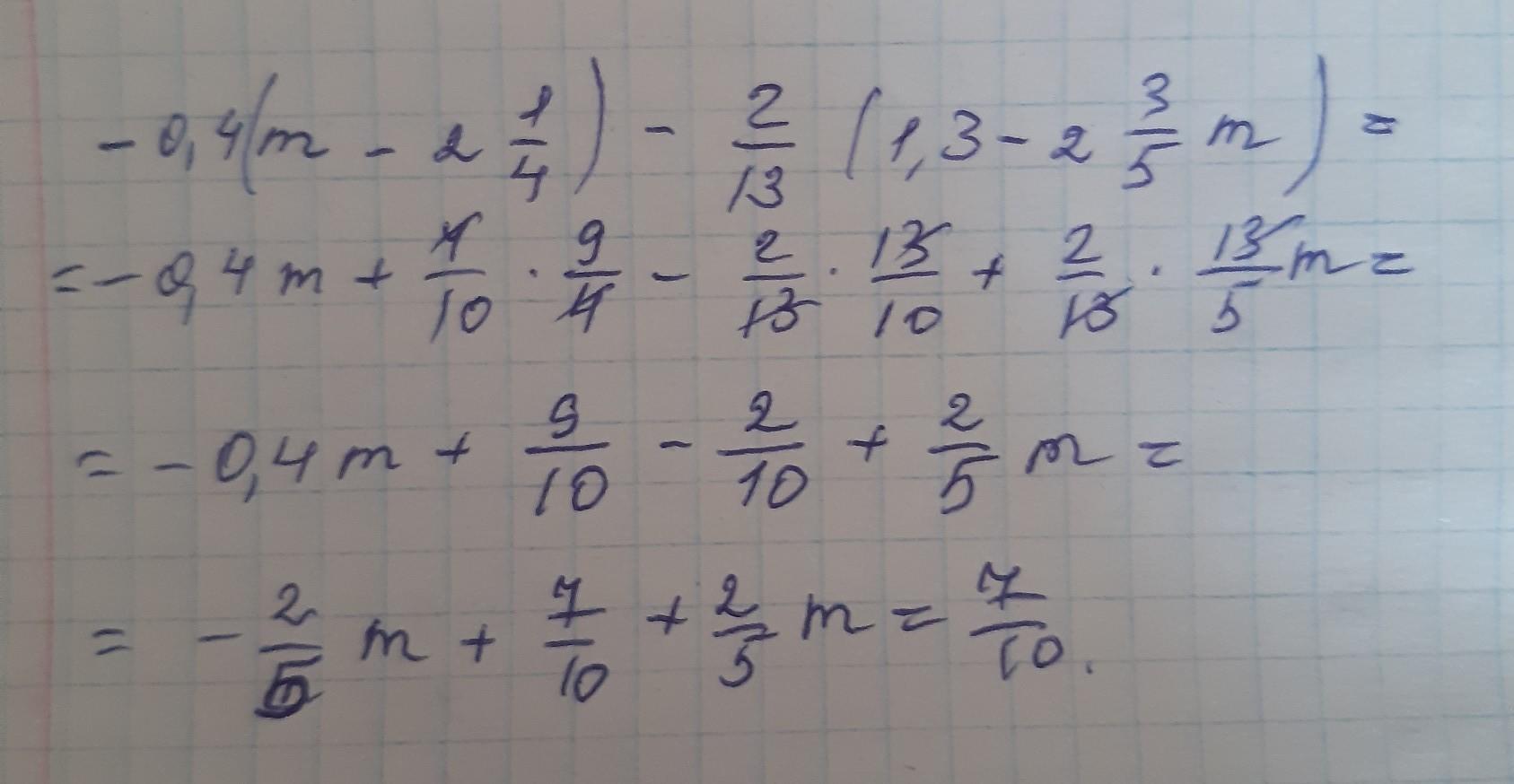 -0,4(m-2 1/4)-2/13(1,3-2 3/5 m)