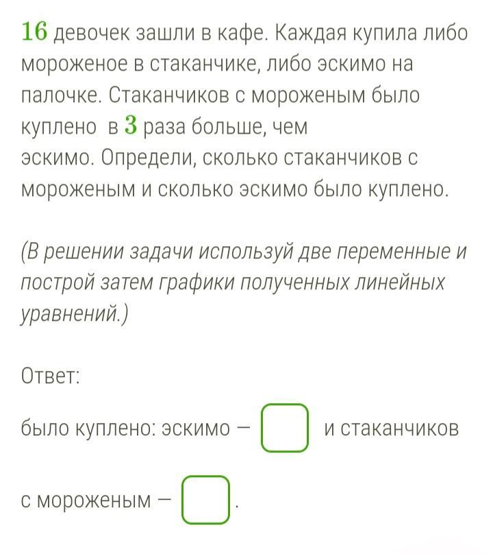 Мы брали за x-эскимо, значит 4 девочки купили эскимо.