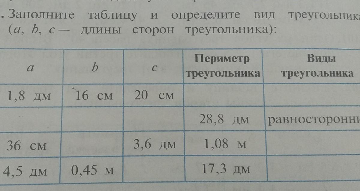 а=b=4,5(дм) → ∆abc – равнобедренный
