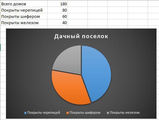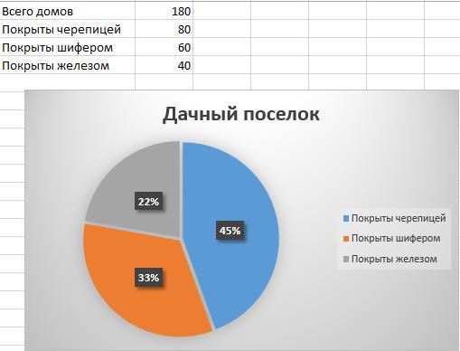 В дачном посёлке 180 домов. Из них 60 домов покрыты черепицей 80 домов шифером а остальные железом. Постройии проанализируй круговую диаграмму.
