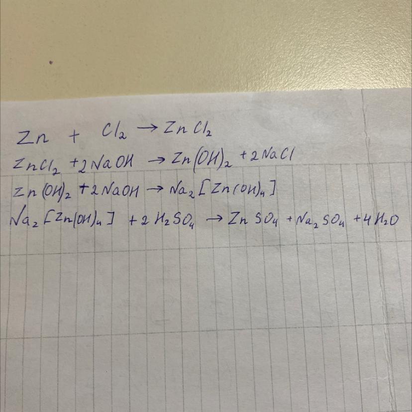 осуществите превращения по схеме укажите типы реакций назовите вещества, тип реакций. Za→ZnCl2→Zn(OH)2→Na2[Zn(OH)4]→ZnSO4