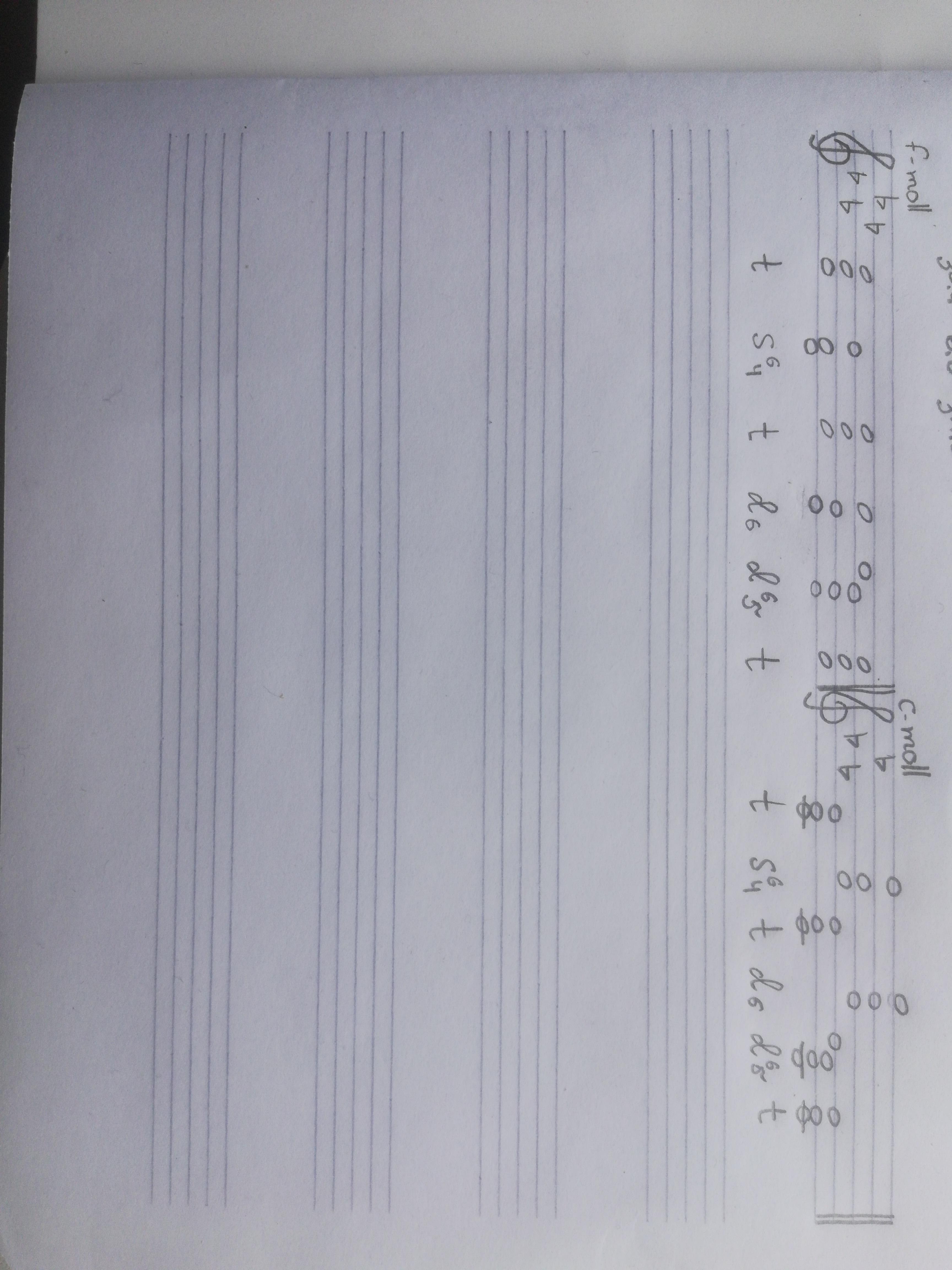 Построить цепочку t53-s64-t53-D6-D65-t53 в до, фа минорах.