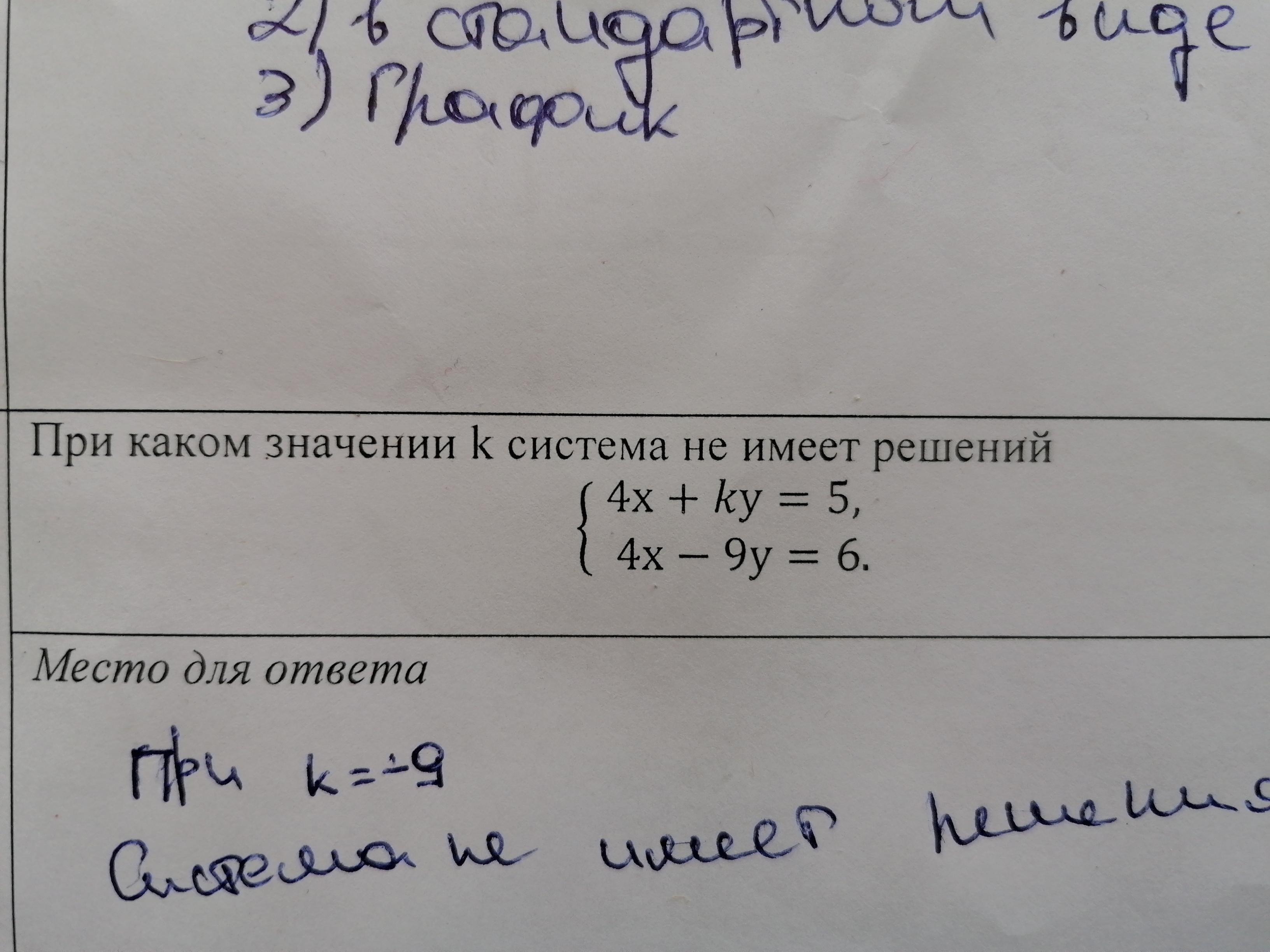 система не имеет решений, если прямые, заданные уравнением, параллельны. здесь при подстановке в уравнение - 9 у функций получатся одинаковые коэффециенты k, но разные m. это значит, что прямые имеют одинаковые угол наклона относительно оси Ох, но пересекают ось Оу в разных точках. значит, они действительно параллельны.