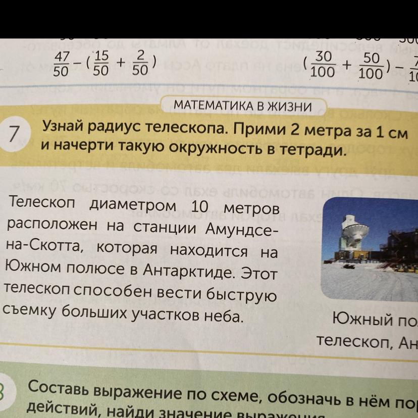 Узнай радиус телескопа. Прими 2 метра за 1 см