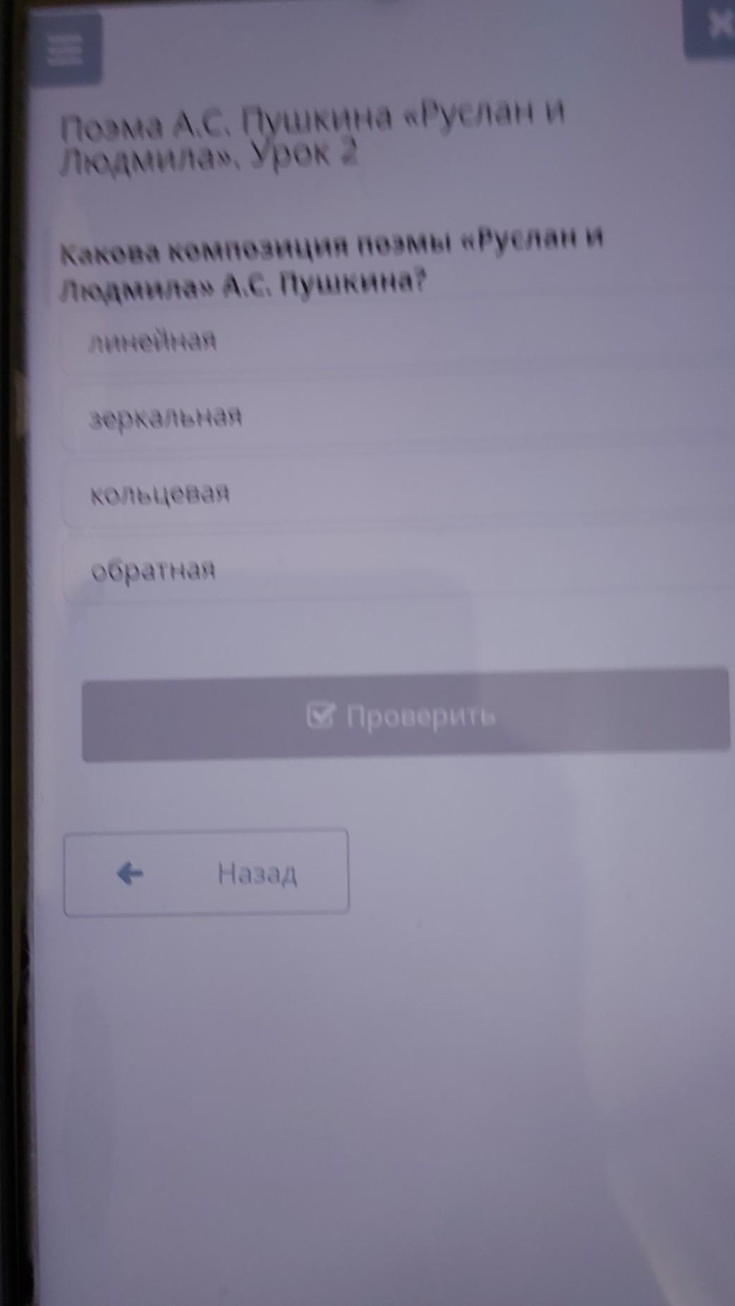 Какова композиция поэмы «Руслан и Людмила» А.С. Пушкина? линейная зеркальная кольцевая обратная
