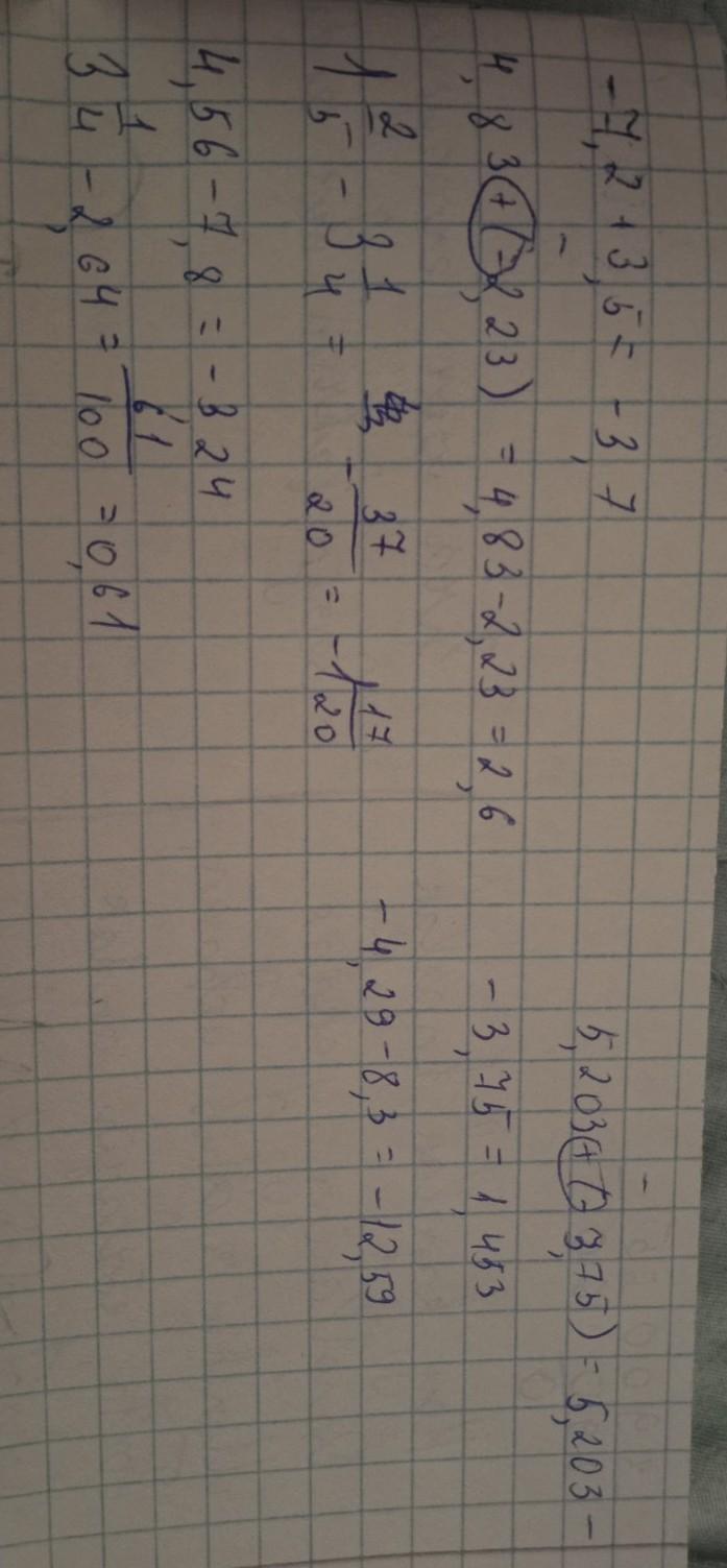 -7,2 + 3,5 = -3,7