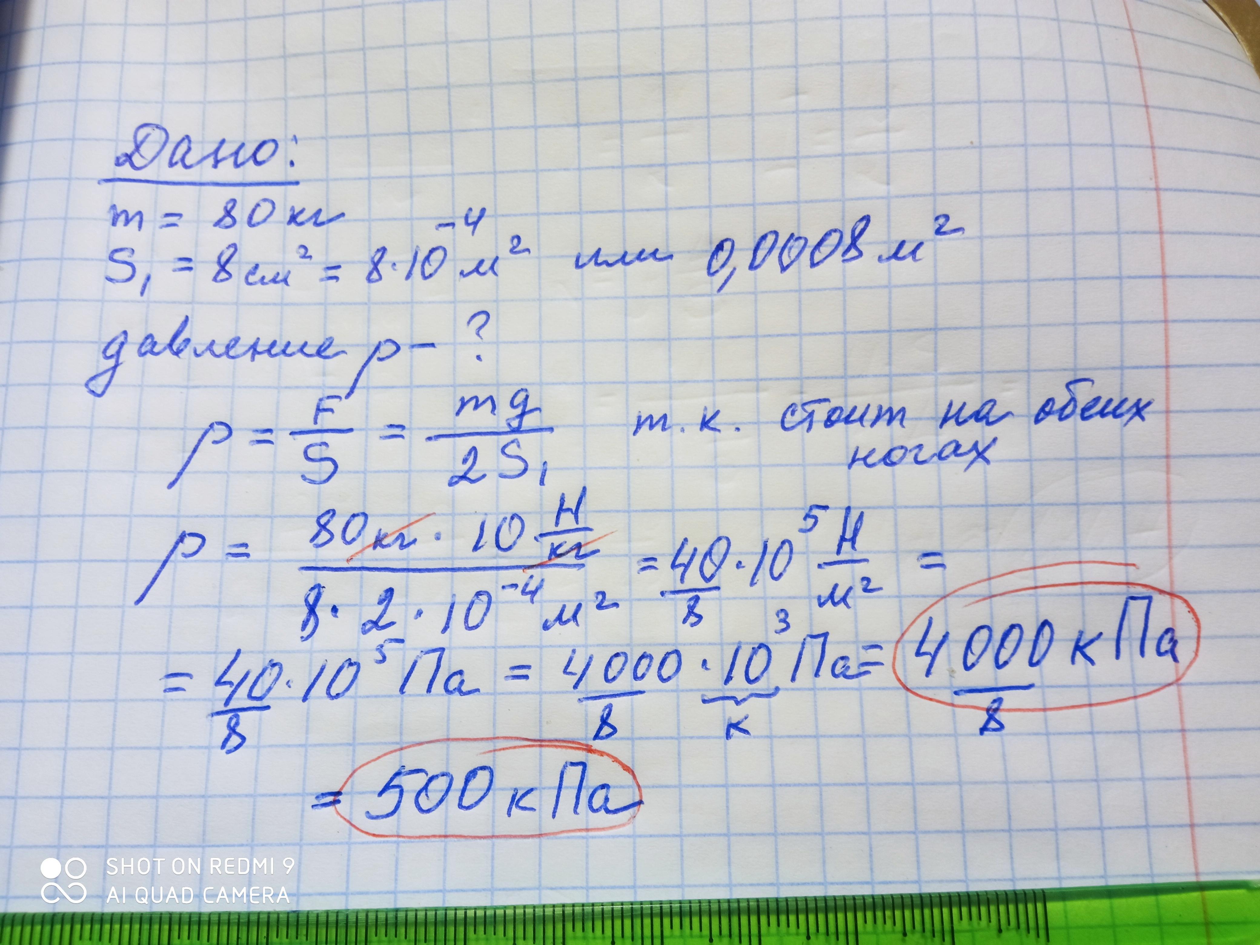 8. Визначити тиск на лід ковзаняра масою 80 кг, якщо він стоїть на двох ногах. Площа дотику кожного леза з льодом – 8 см2. Відповідь подайте у кілопаскалях. Одиниці вимірювання біля числа записувати не потрібно, лише число. Ваша відповідь