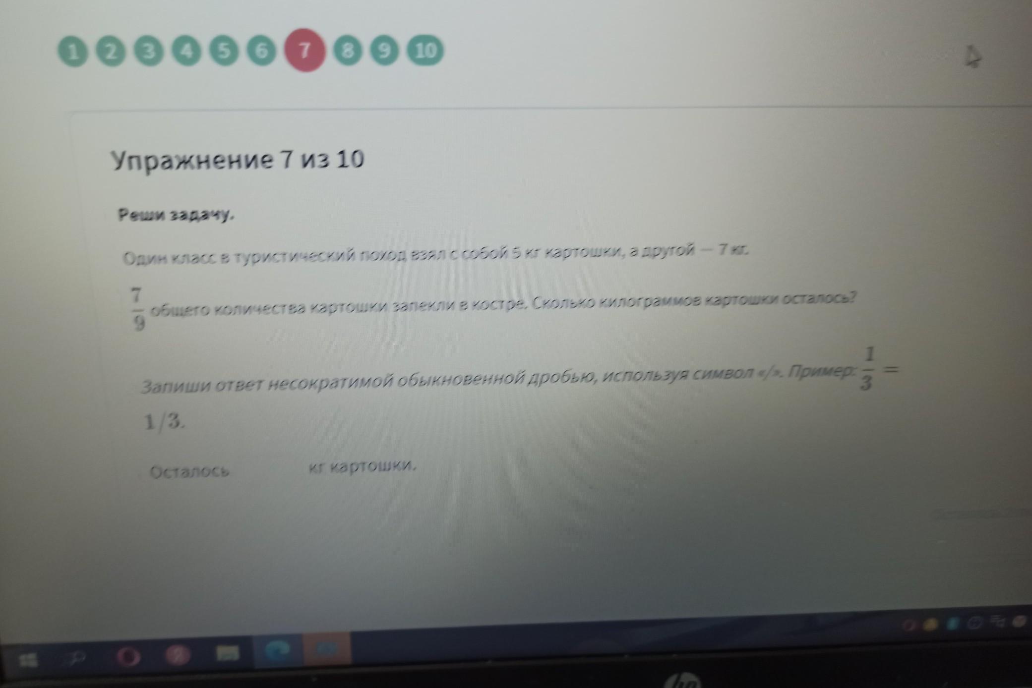 Всего 12 кг картошки, значит 7/9 картошки -- 12*7/9=28/3( кг) запекли