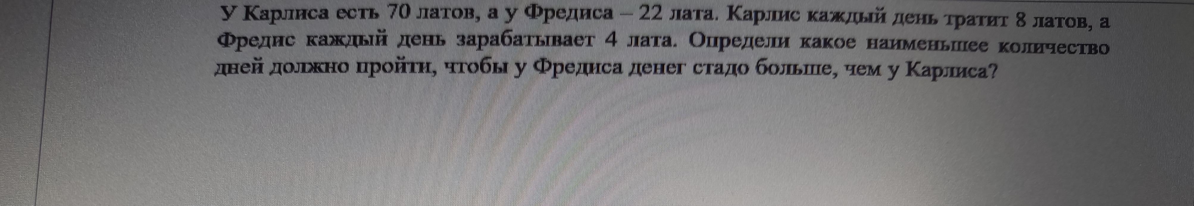 5 день: Карлис: 30 лат > Фредис: 42 лата