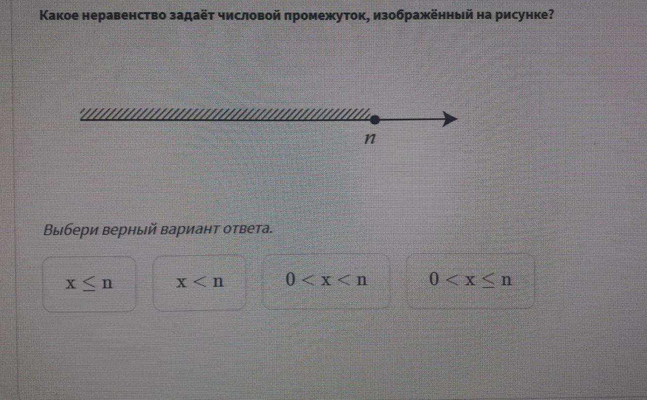 на оси заштрихована часть слева от n, значит, что все числа х будут меньше. Точка n закрашена, поэтому знак ≤, а не просто <