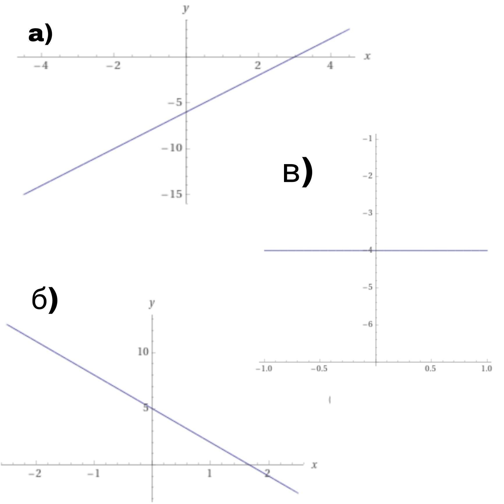 а) у=2х - 6 б) у=-3х + 5 в) у=-4