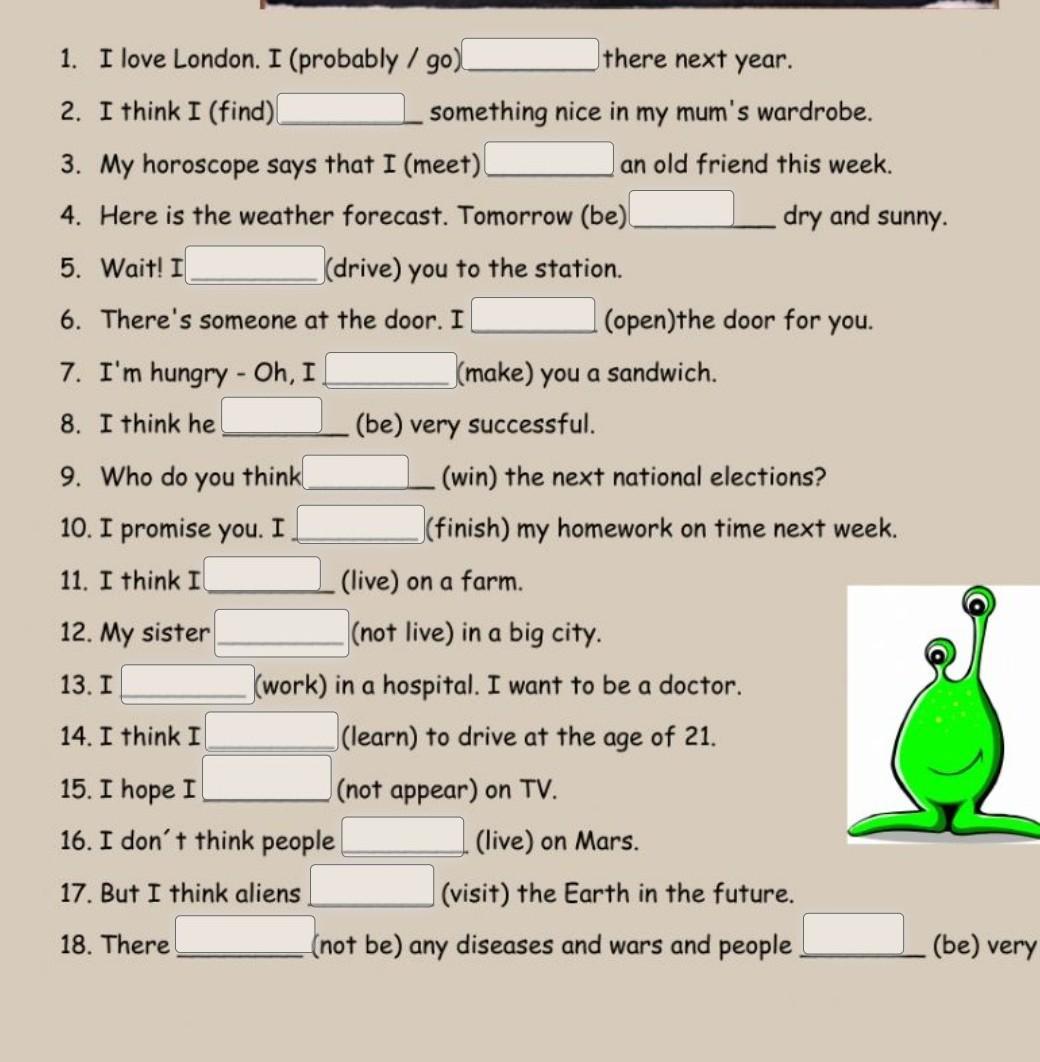 1. will probably go 2. will find
