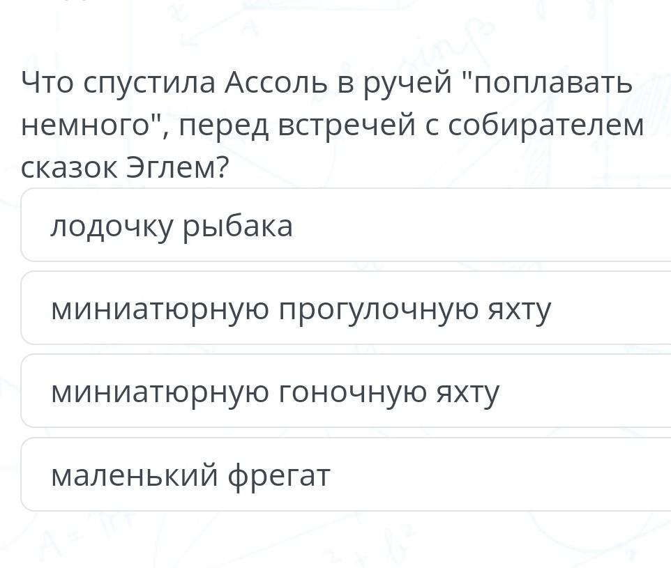 "Ассоль на пути из Лисса в Каперну спустила в ручей яхту, сделанную её отцом Лонгреном"