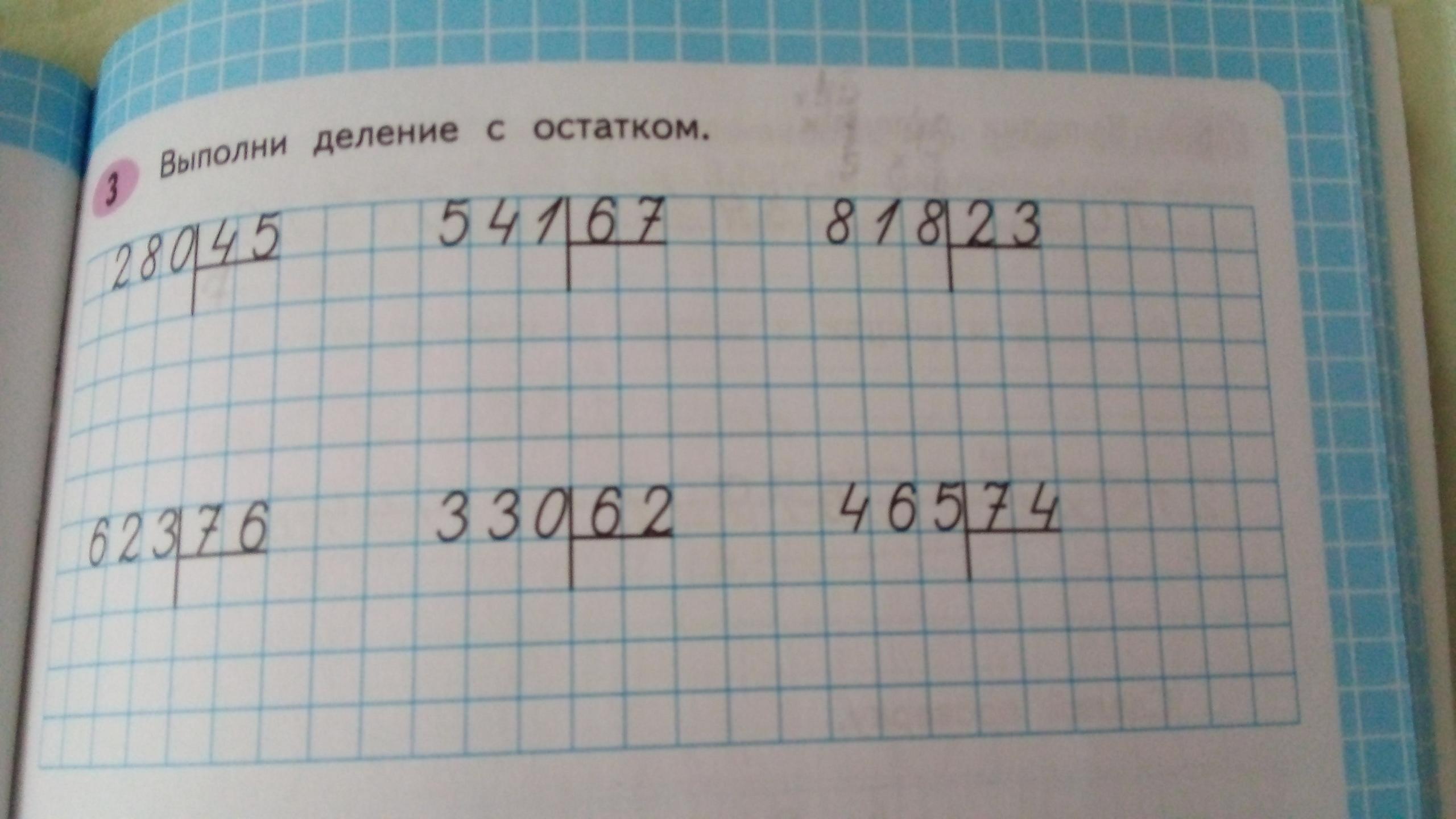 280:45=6(10) 541:67=8(5) 818:23=35(13) 623:76=8(15) 330:62=5(20) 465:74=6(10)