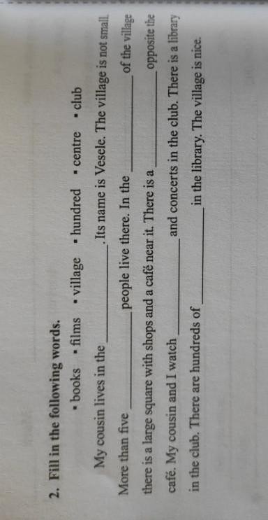 1. Village 2. hundred 3. centre 4. club 5. films 6. books