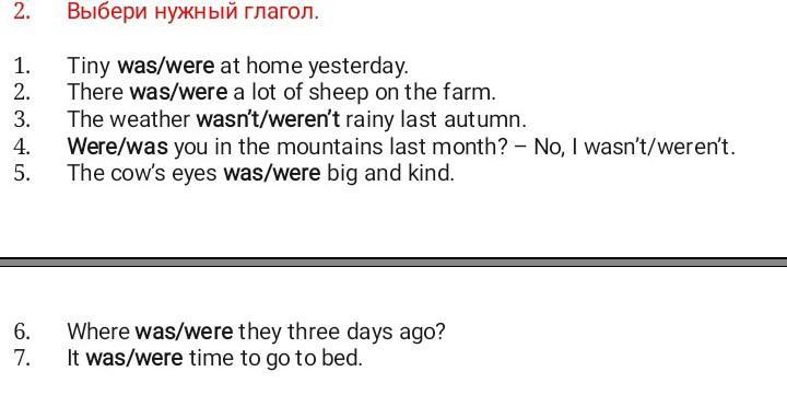 1. was 2.were 3.wasn’t 4.were, wasn’t 5.were 6.were 7.was