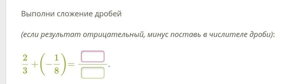 2/3 + (-1/8) = (2*8)/(3*8) - (1*3)/(8*3) = 16/24 - 3/23 = 13/24.
