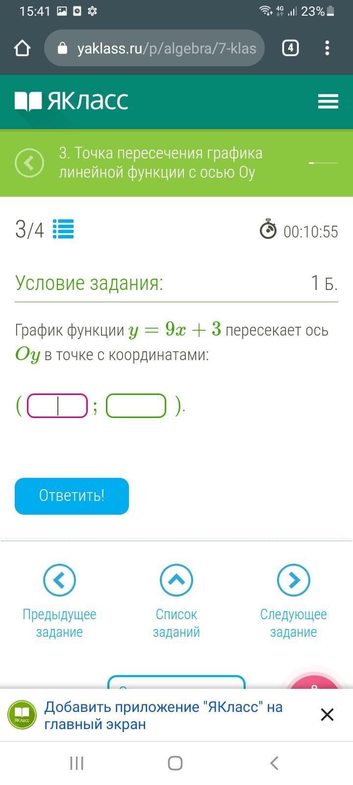 Если график пересекает ось OY , то абсцисса точки пересечения равна нулю то есть x = 0 . Найдём ординату точки пересечения :