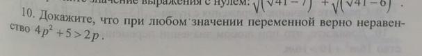4р²+5-2р=(2р-0.5)²-0.25+5=4.75+(2р-0.5)²>0, т.к. 4.75- положительно, а