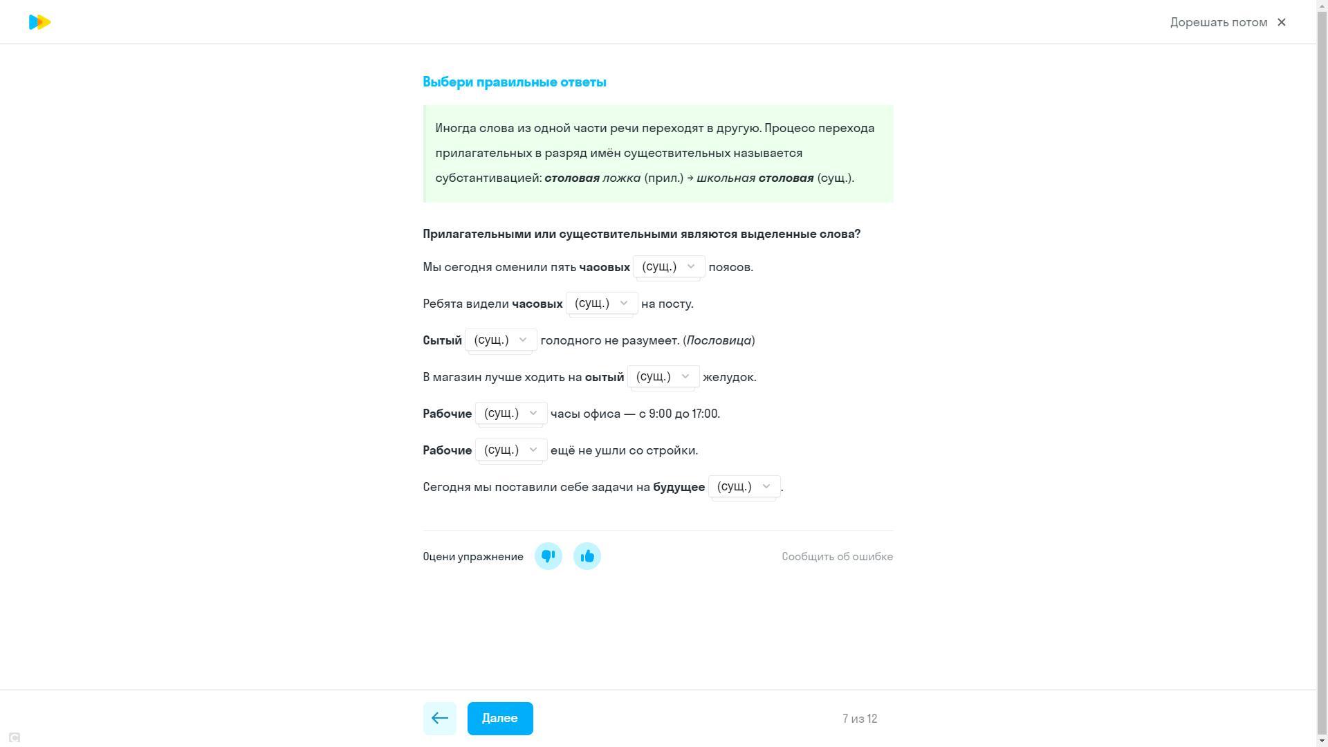 выбрать надо среди прил и сущ