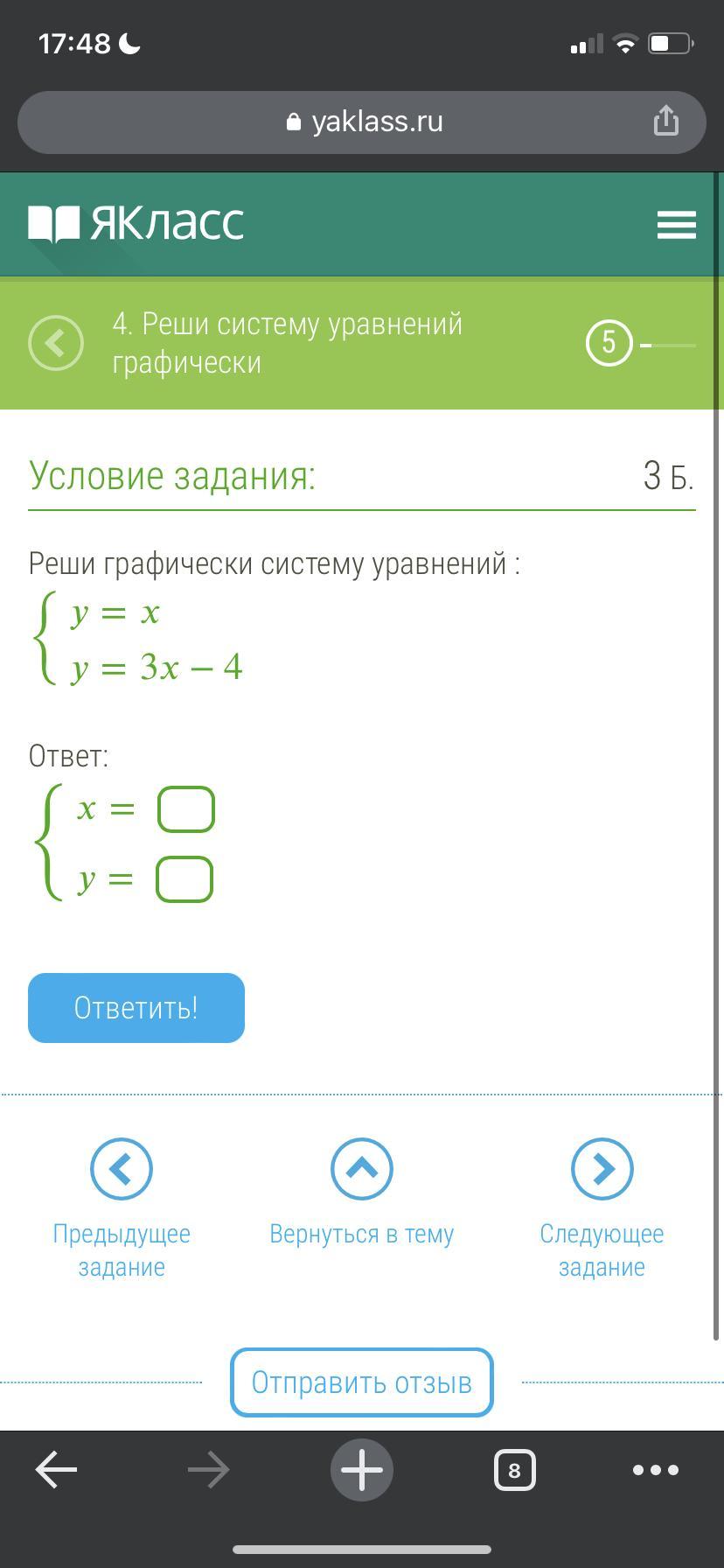 если y=x, то y=3x-4 можно представить как x=3x-4