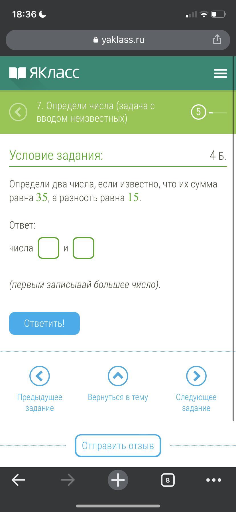 ответ 15 я так думаю проверь ещё раз