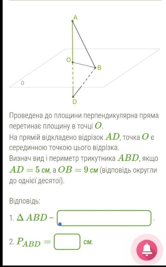 АО⊥α, значить АО⊥ВО, тоді