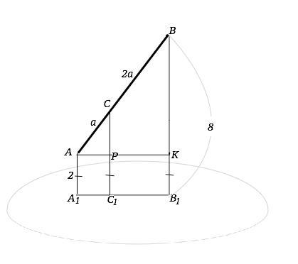 Отрезок АВ не пересекает плоскость. Через концы отрезка АВ провели паралельные прямые которые пересекают плоскость в точках А1 и В1. Через точку С , которая делит отрезок АВ в соотношении АС:СВ=1:2 тоже провели прямую которая параллельная до прямых АА1 и ВВ1. Найти СС1, если АА1=2 , ВВ1=8