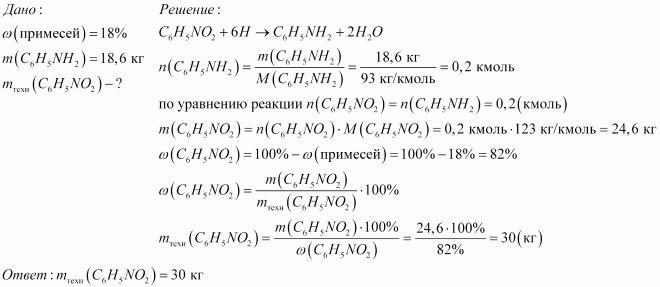 Визначте масу нітробензену, що містить 4% домішок, необхідного для одержання аніліну масу 18,6г