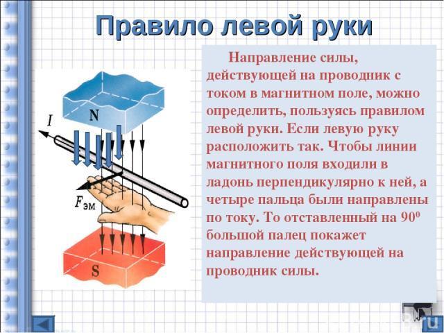 определите направление силы, действующей на проводник с током, находящийся в однородном магните