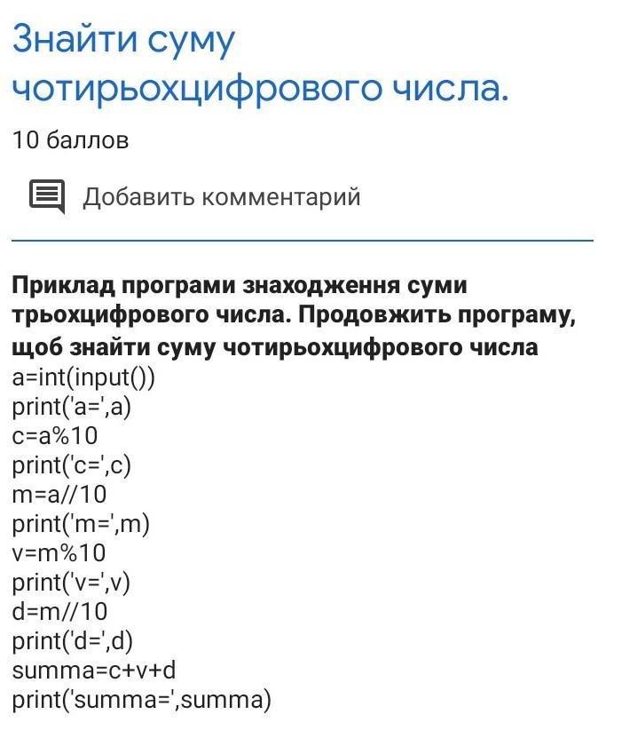 найти сумму читырёх числового числа пример снизу