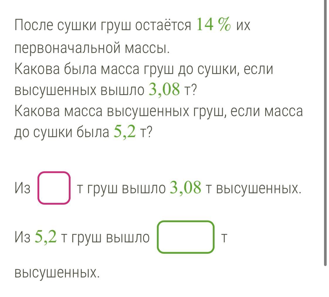 Ответ: 22 тонны груш ДО сушки