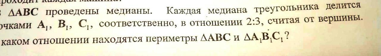 То же и про треугольники ОВС и ОВ1С1 и треугольники ОАС и ОА1С1. Значит стороны треугольников А1В1С1 и АВС параллельны (соответственные углы при секущих равны). Треугольник А1В1С1 подобен треугольникуАВС по трем углам. Коэффицинт подобия равен 2,5. Значит периметр АВС в 2,5 раза больше периметра А1В1С1.