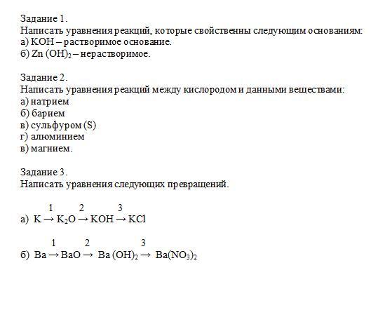 1 задание не совсем понятно,это нужно реакции обмена и разложения написать или получение этих оснований?