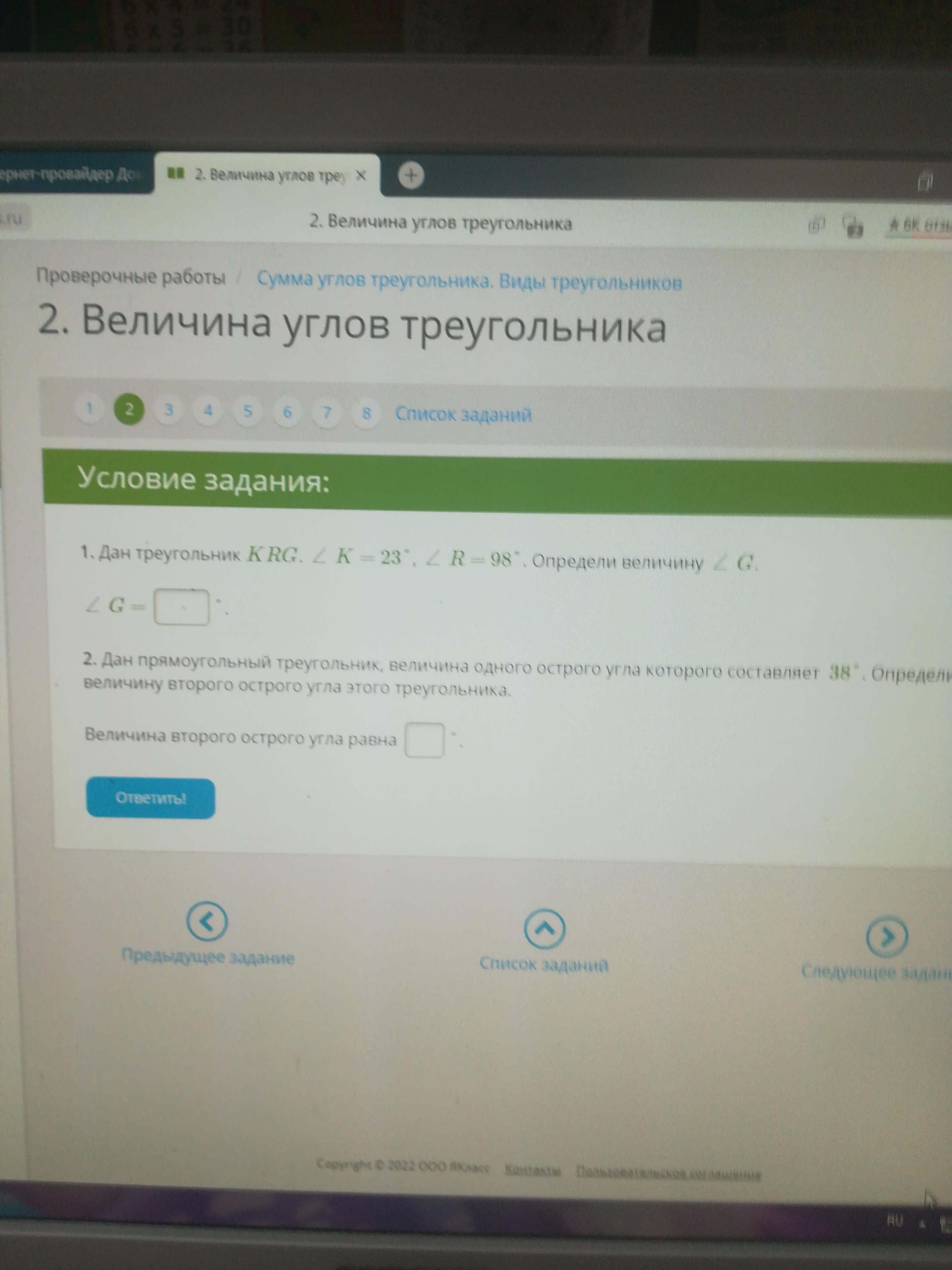2)Сумма углов прямоугольного треугольника должна быть равна 180°.
