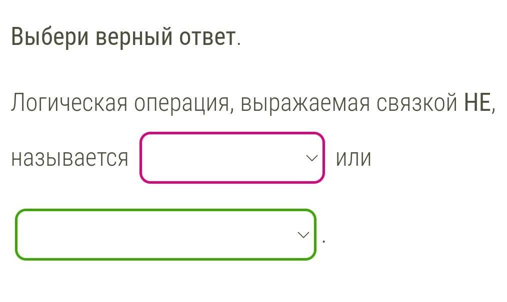 Логическая операция, выражаемая связкой НЕ, называется Инверсия или Отрицание