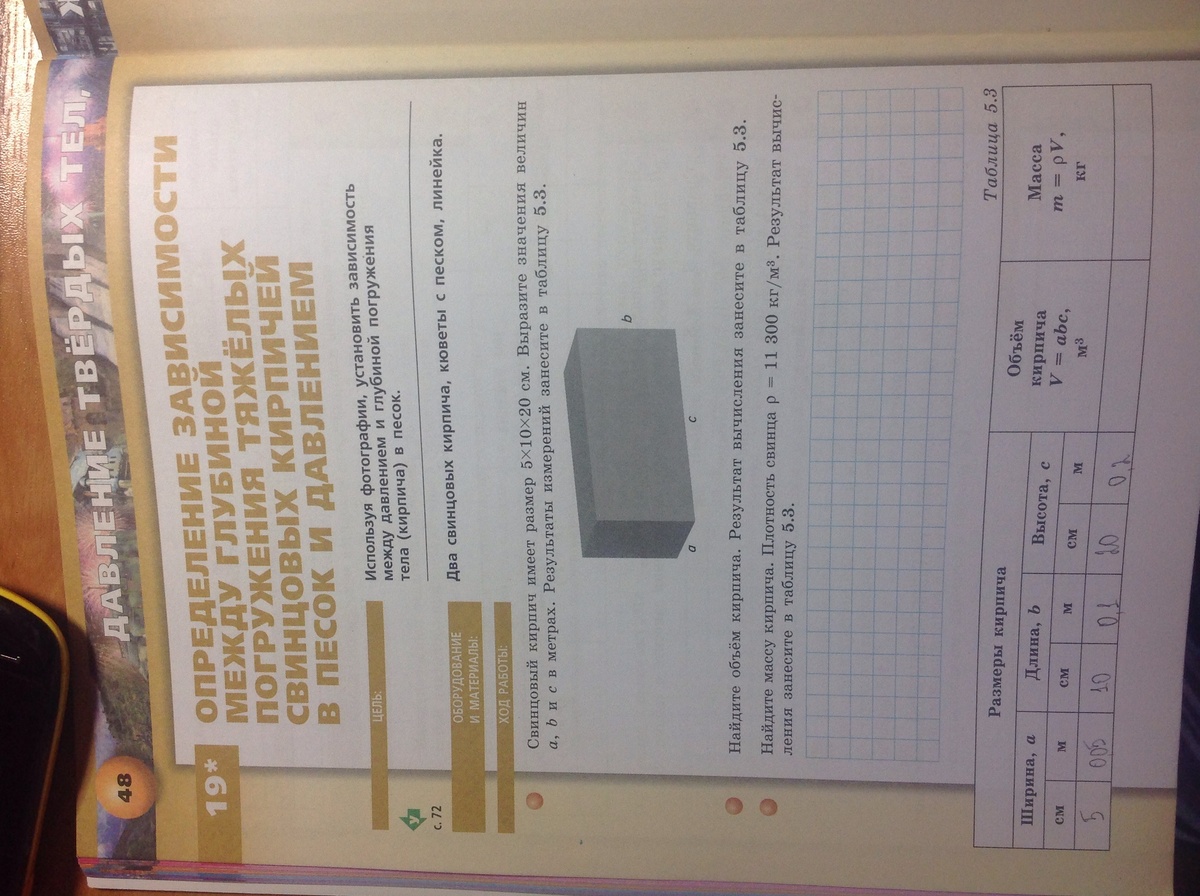 Ниже сноска, что этот опыт Вы должны произвести сами (правда, я не знаю, откуда у Вас возьмутся 2 свинцовых кирпича по 11,3 кг))