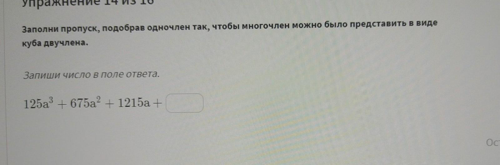 понятно, чего не хватает? верно, у³. А что такое у? это 9, значит, у³=9³=9*9*9=729