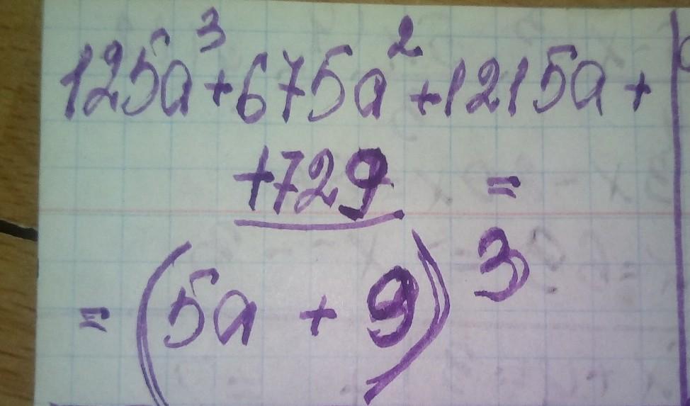 и запись сворачиваем по формуле 125а³+675а²+1215а+729=(5а+9)³