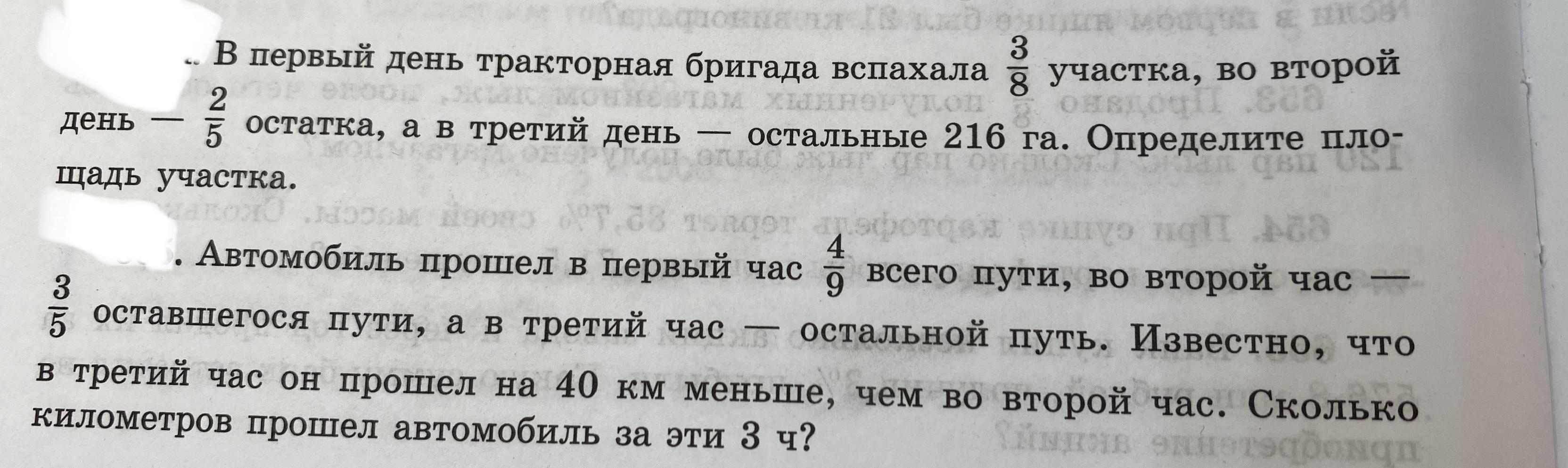 2) 216:3/5=216*5/3=360 га вспахали за 2 и 3 дни вместе