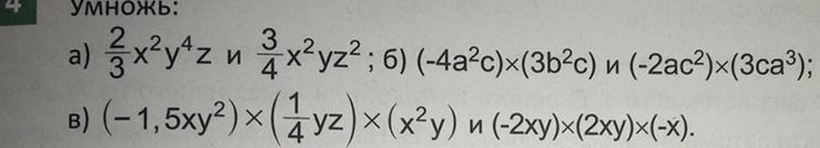 в)(-1,5xy²)×(1/4yz)×(x²y)×(-2xy)×(2xy)×x=