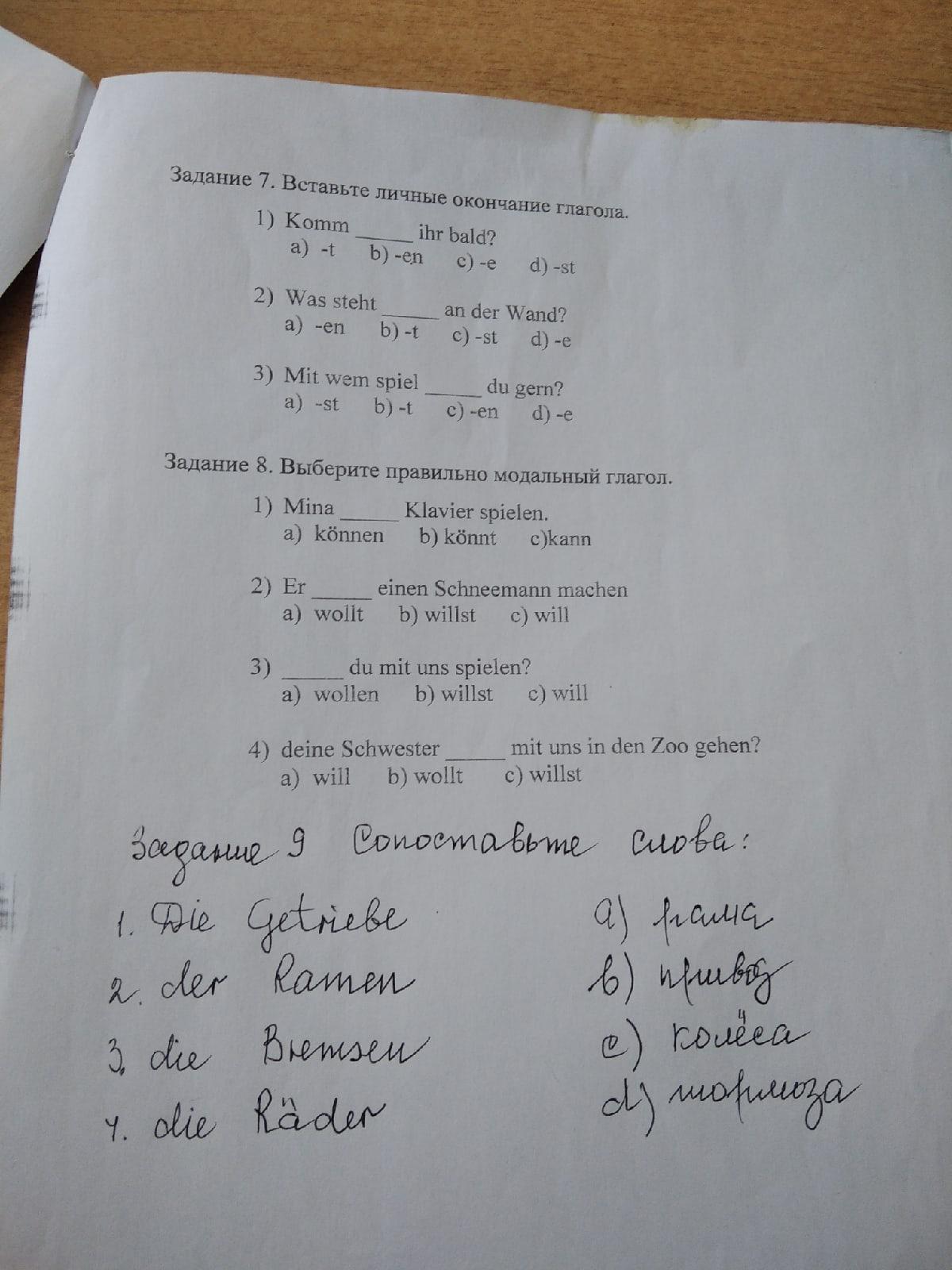 Помогите пожалуйста с немецким.....9 лет учил английский в школе, пришёл в техникум, а там немецкий...Клепают задания, ничего толком не объясняют...Ответов в интернете НЕТ вообще.....Нужно выполнить задания, кроме 1 и 9...Заранее большое спасибо