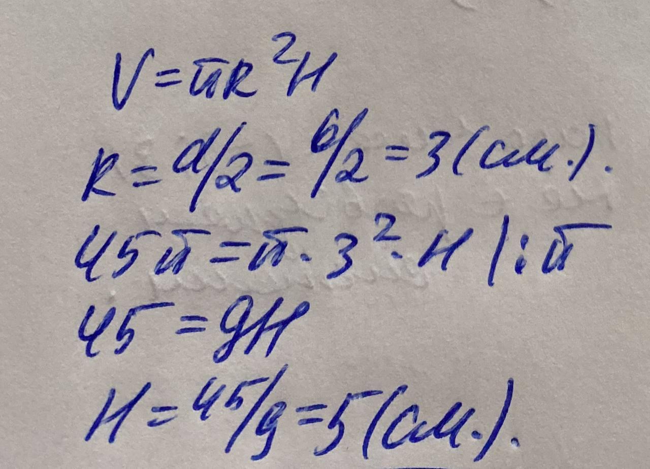 H=45/9=5(см.)